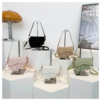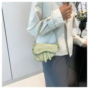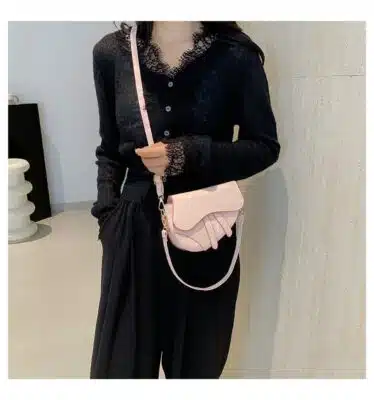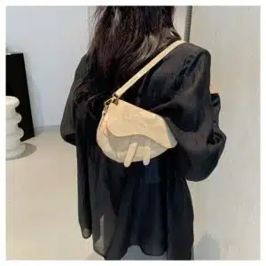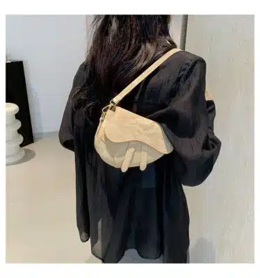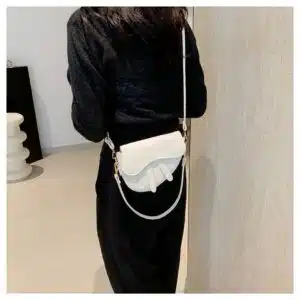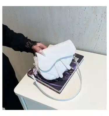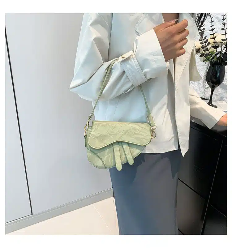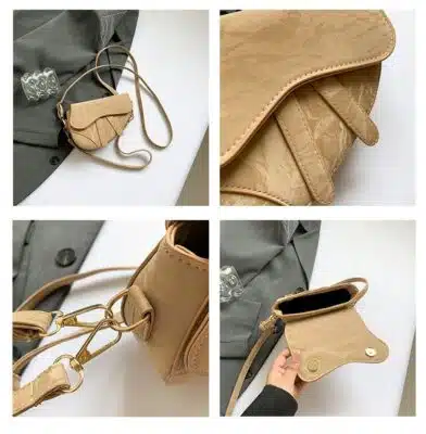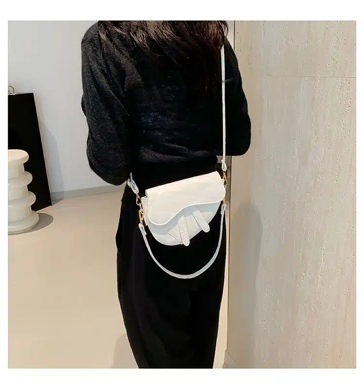 Design Highlight: A distinctive curved saddle silhouette with decorative hanging straps and a secure magnetic closure.