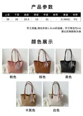 Product Name: Chic Daily Tote Bag with Scarf Accent (Size: Width 36cm, Height 26.5cm, Thickness 13cm)