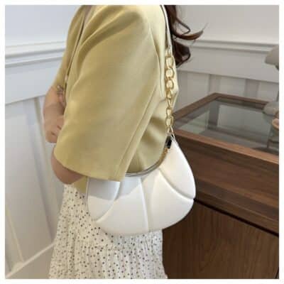 Chic Ruched Crescent Bag with Gold Chain Link FN310