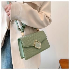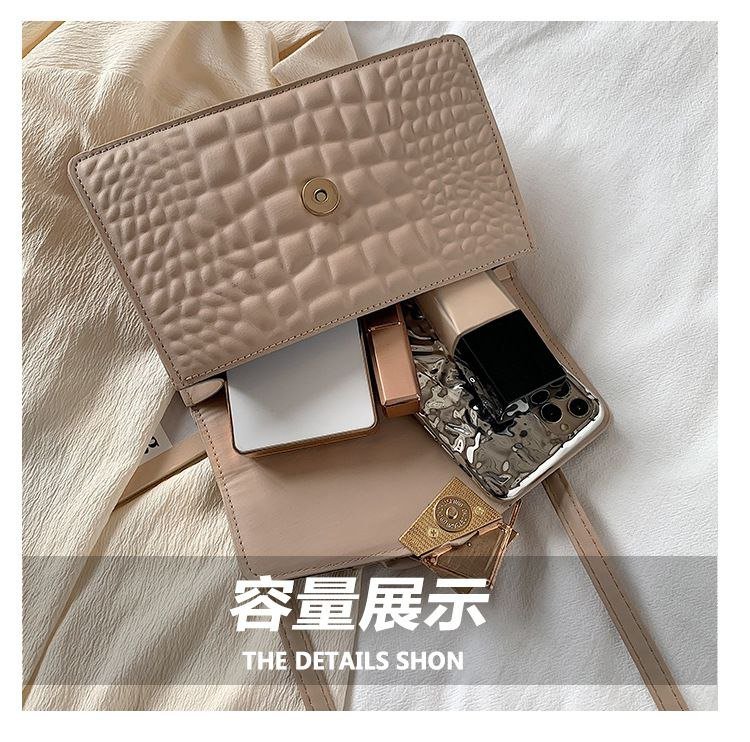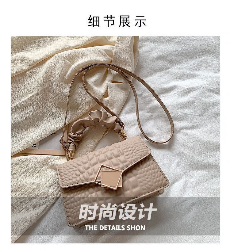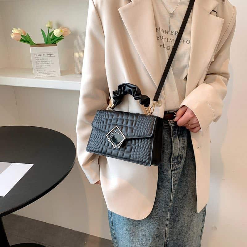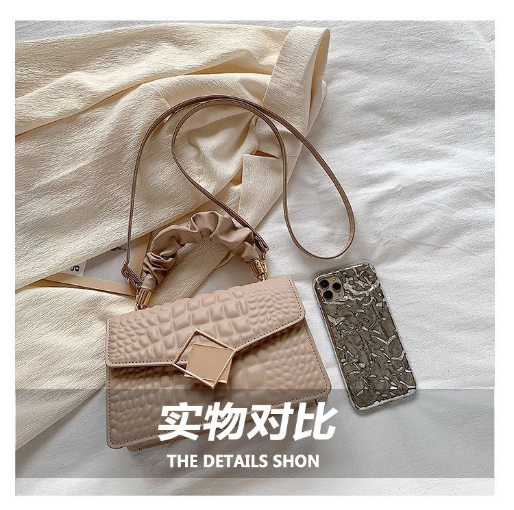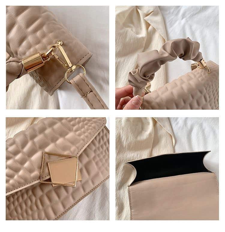 This is a chic and highly textured crossbody bag that combines a vintage crocodile pattern with a modern ruched handle design. Its compact size and sophisticated square buckle make it an ideal accessory for both daily errands and special events.