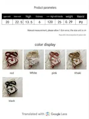 Dimensions: The bag has an upper width of 20cm, a bottom width of 22.5cm, a height of 13.5cm, and a thickness of 6cm.