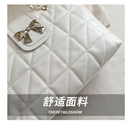 Product Name: Elegant Quilted Tote with Bow Accent (Size: Width 32cm, Height 20cm, Thickness 11.5cm)