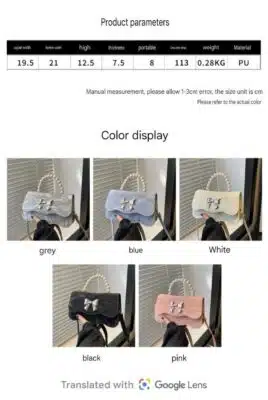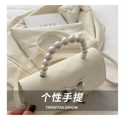 Strap & Handle: Features a 8cm high pearl bead handle and a 113cm long shoulder strap for versatile carrying.