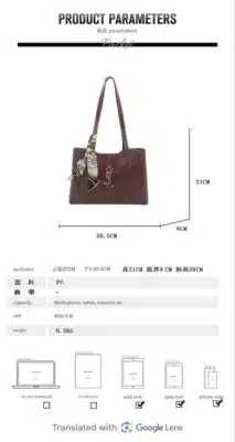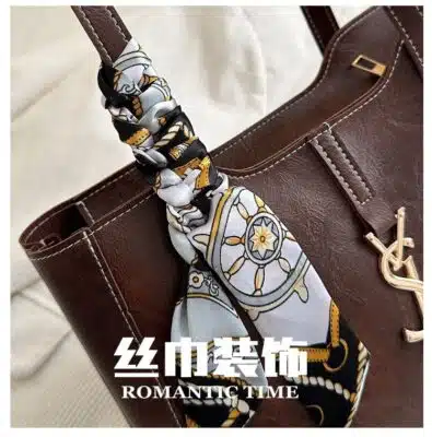 Product Description This sophisticated tote bag blends timeless elegance with modern design, featuring a smooth structured silhouette and clean lines. Designed for the stylish professional or modern woman, it offers a functional interior for your daily essentials while maintaining a high-end, polished aesthetic. For an added touch of luxury, each bag comes with a decorative printed silk-style scarf tied to the handle and a signature metallic logo accent on the front.