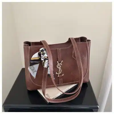 Design Highlight: A sleek gold-tone Y-shaped metallic logo and a charming detachable scarf accent provide a refined and trendy aesthetic.