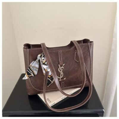 Product Description This sophisticated tote bag blends timeless elegance with modern design, featuring a smooth structured silhouette and clean lines. Designed for the stylish professional or modern woman, it offers a functional interior for your daily essentials while maintaining a high-end, polished aesthetic. For an added touch of luxury, each bag comes with a decorative printed silk-style scarf tied to the handle and a signature metallic logo accent on the front.