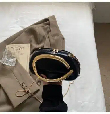 Design Highlight: A bold, polished gold-tone oval frame on the front panel serves as a sophisticated statement piece.