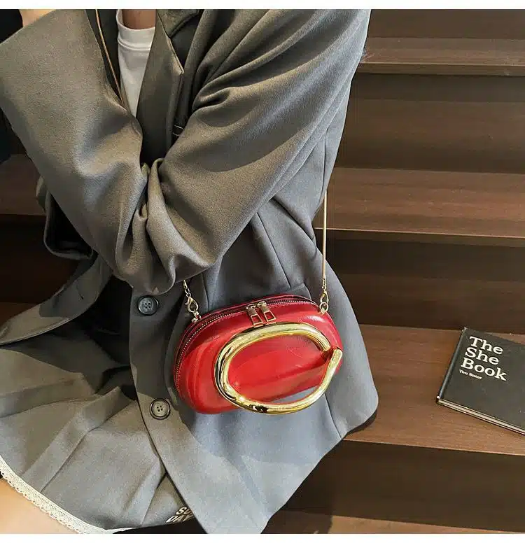 Product Description This chic crossbody bag is the epitome of modern style, featuring a unique oval metallic accent on the front. Its compact, rounded silhouette and high-shine finish make it a perfect accessory for evening events or as a stylish addition to your casual outfit. Designed for the minimalist at heart, it offers a secure top-zip closure to keep your essentials safe while maintaining a sleek, trendy look.