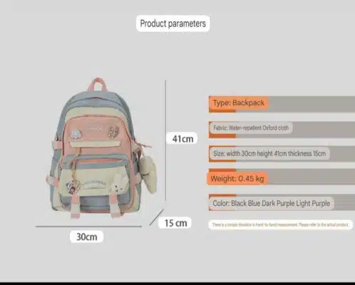 Dimensions: The backpack measures 30cm in width, 41cm in height, and 15cm in thickness.