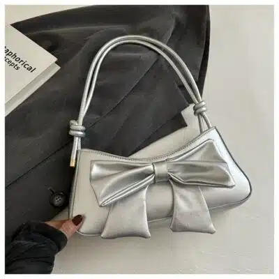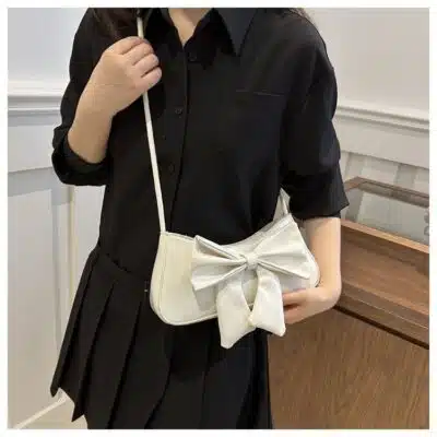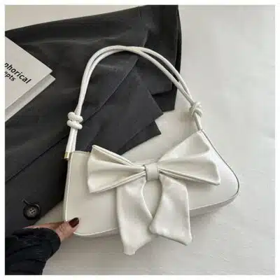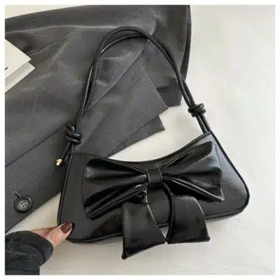 This statement shoulder bag features a striking, oversized bow design that serves as the entire front of the silhouette. Combining playful femininity with a modern minimalist shape, this bag is a perfect choice for those looking to add a unique, high-fashion touch to their wardrobe. The sleek material and knotted handle detail provide a polished finish, making it suitable for both casual dates and stylish social gatherings.