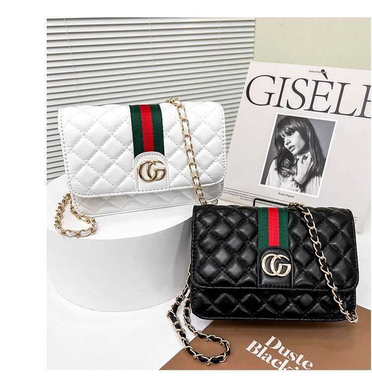 Quilted Chain-Strap Flap Bag with Signature Webbing FN428