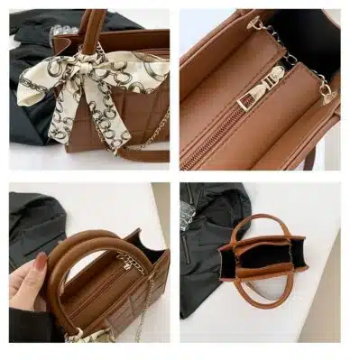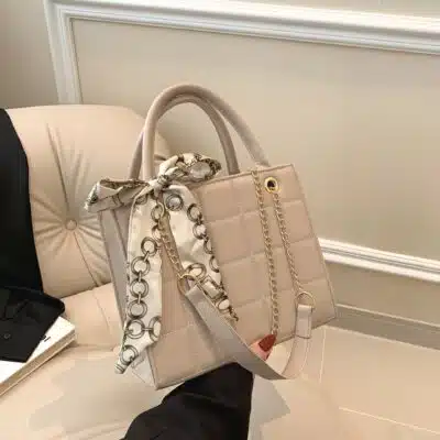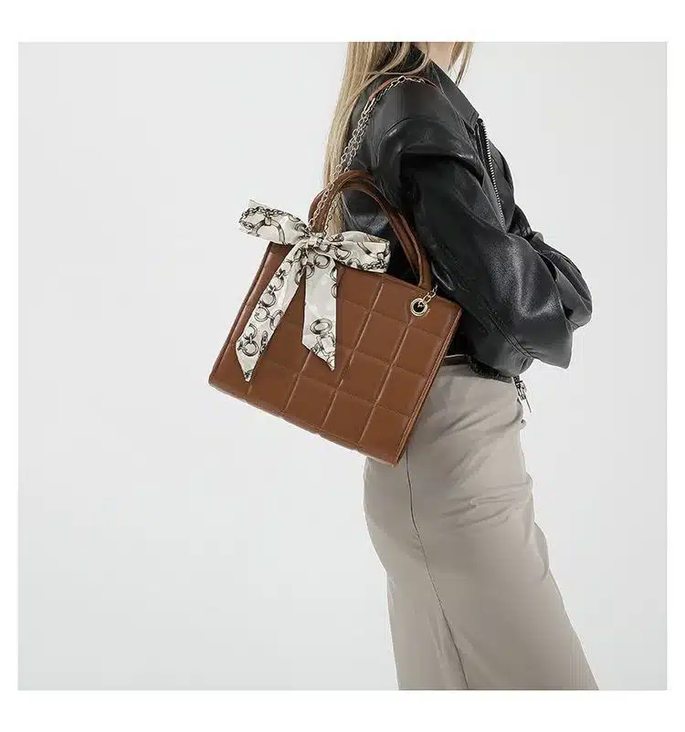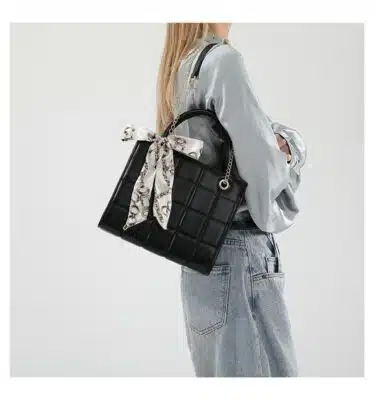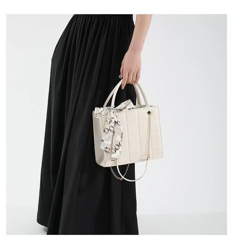 This elegant and trendy handbag features a classic quilted pattern paired with a stylish decorative scarf. Designed for the modern woman, it combines a polished look with practical features, making it ideal for daily use or special occasions. The sturdy top handle and adjustable long strap offer multiple carrying options to suit your style.