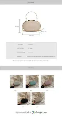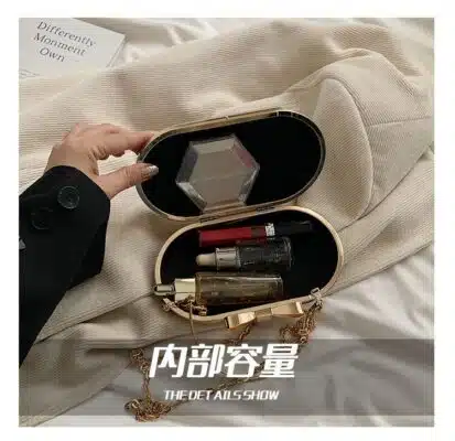 Product Name: Shimmering Oval Clutch with Metallic Handle (Size: Width 19cm, Height 11cm, Thickness 6cm)