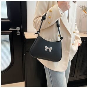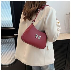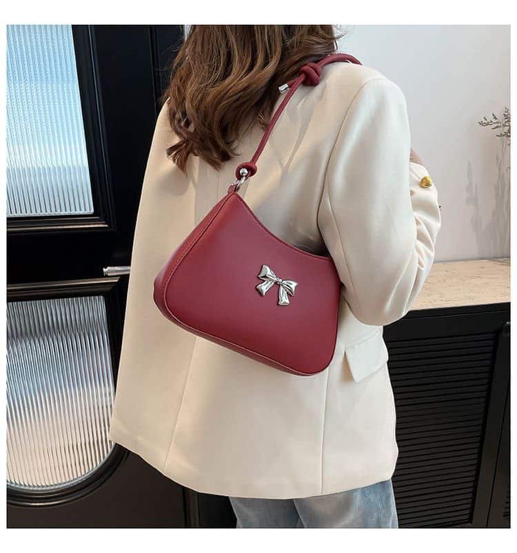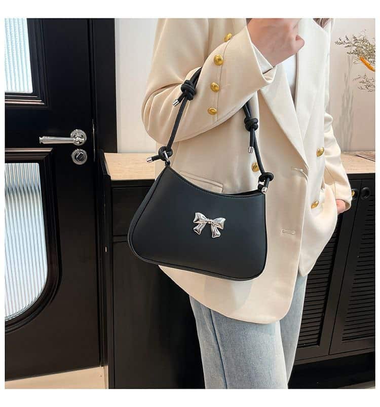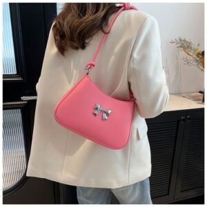 Product Name: Small Metallic Bow Shoulder Bag (Size: Width 26cm, Height 17cm, Thickness 4.5cm)