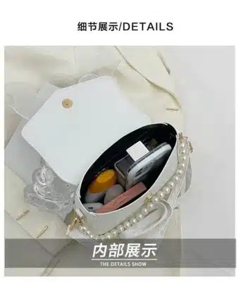 𝐒𝐭𝐫𝐚𝐩 & 𝐂𝐡𝐚𝐢𝐧: Includes a long 𝟏𝟐𝟓𝐜𝐦 𝐚𝐝𝐣𝐮𝐬𝐭𝐚𝐛𝐥𝐞 𝐬𝐡𝐨𝐮𝐥𝐝𝐞𝐫 𝐬𝐭𝐫𝐚𝐩 for 𝐨𝐧𝐞-𝐬𝐡𝐨𝐮𝐥𝐝𝐞𝐫 𝐨𝐫 𝐜𝐫𝐨𝐬𝐬𝐛𝐨𝐝𝐲 wear, along with a decorative 𝐩𝐞𝐚𝐫𝐥 𝐛𝐞𝐚𝐝 𝐜𝐡𝐚𝐢𝐧.