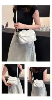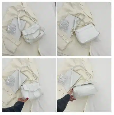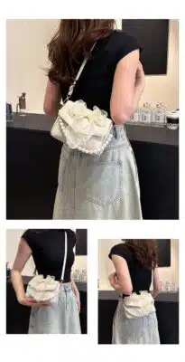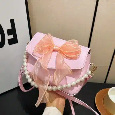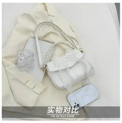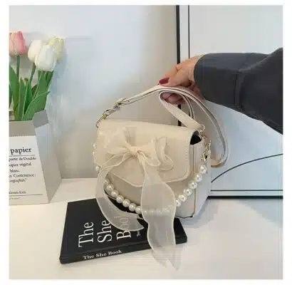 𝐏𝐫𝐨𝐝𝐮𝐜𝐭 𝐍𝐚𝐦𝐞: 𝐒𝐰𝐞𝐞𝐭 𝐁𝐨𝐰-𝐀𝐜𝐜𝐞𝐧𝐭 𝐅𝐥𝐚𝐩 𝐁𝐚𝐠 𝐰𝐢𝐭𝐡 𝐏𝐞𝐚𝐫𝐥 𝐂𝐡𝐚𝐢𝐧
