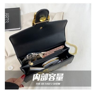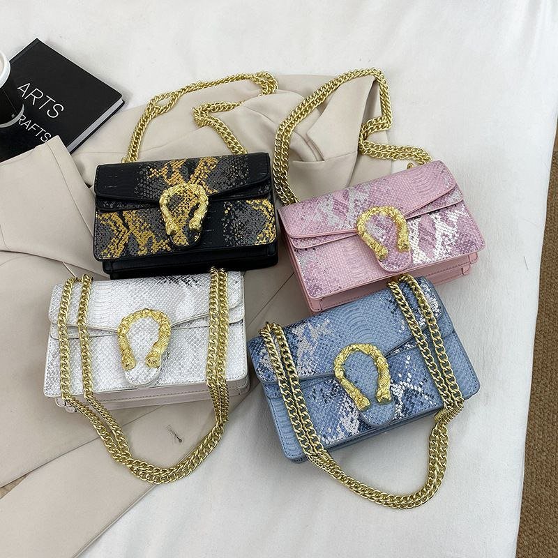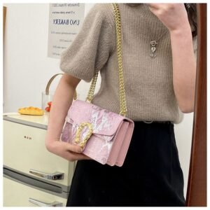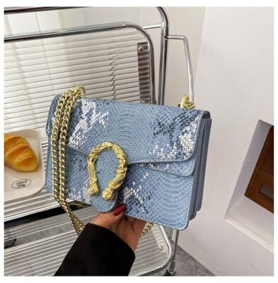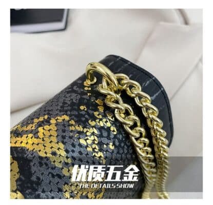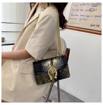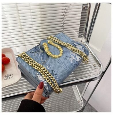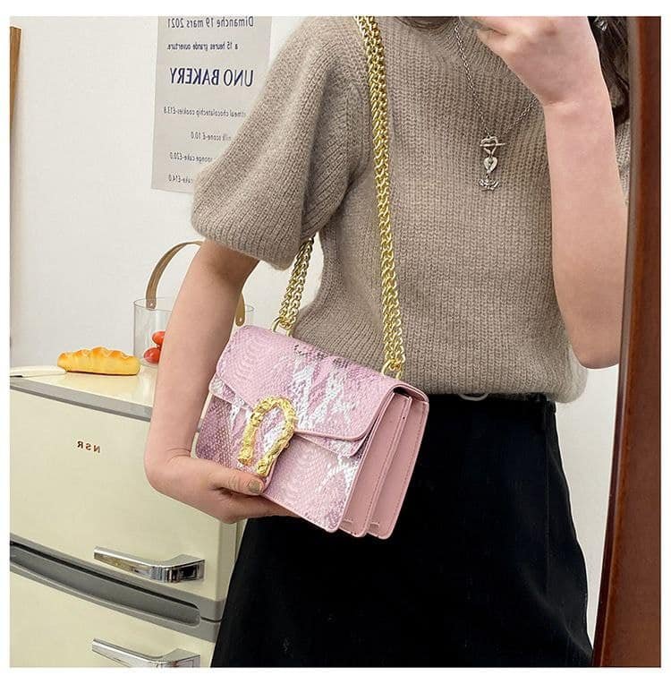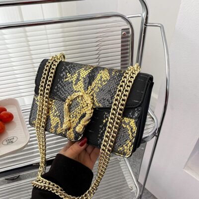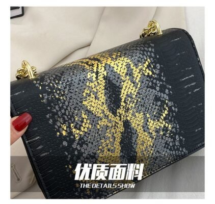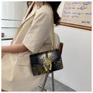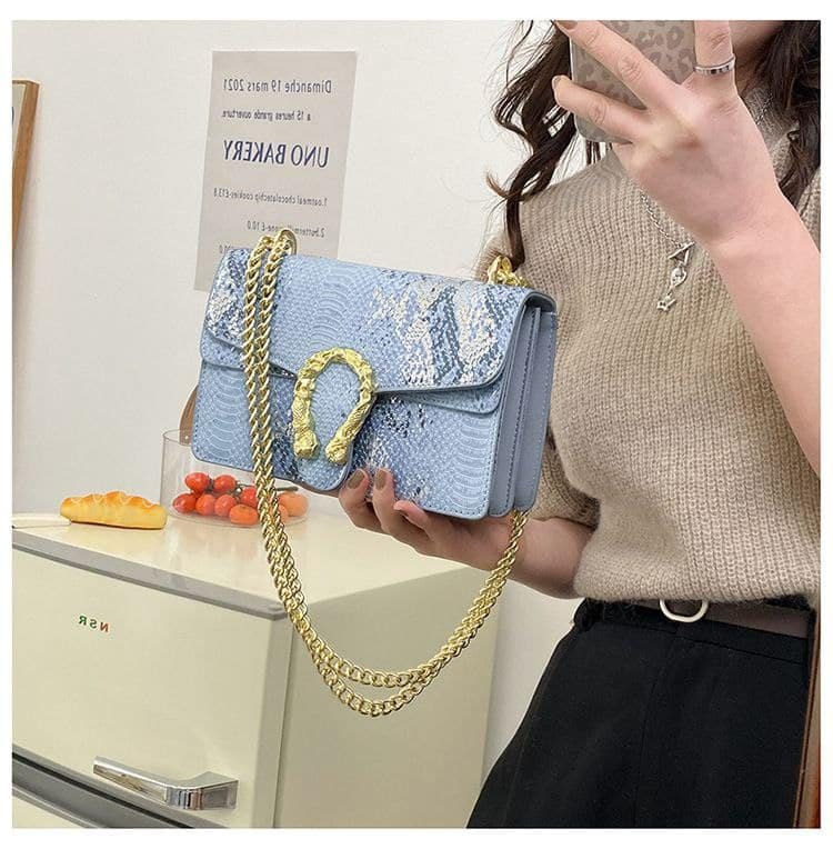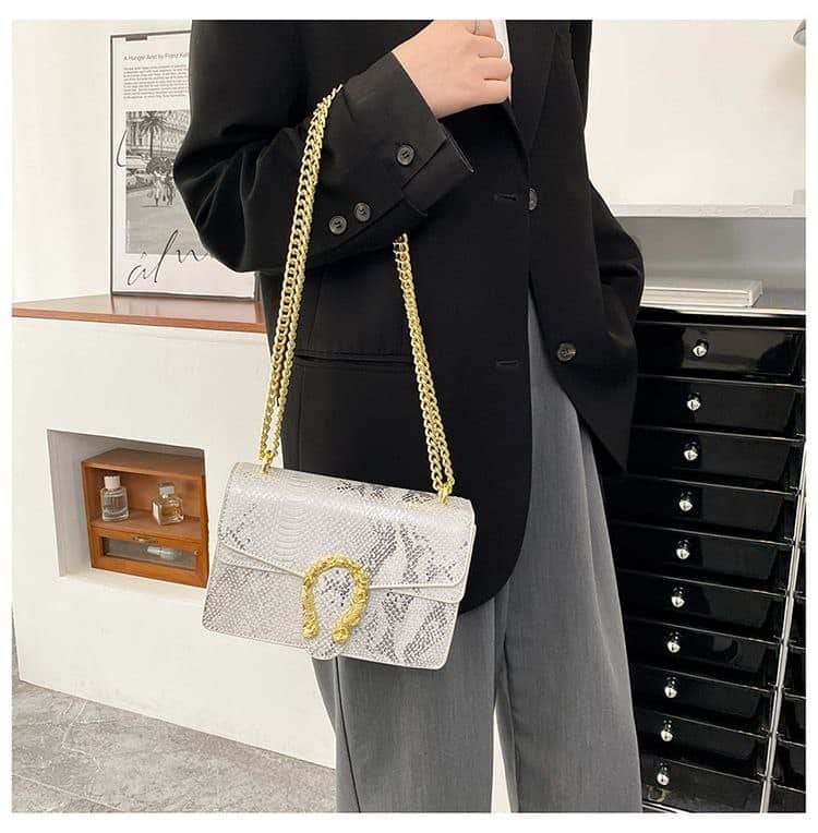 Product Description Make a bold style statement with this exquisite flap bag, featuring a luxurious snakeskin-textured finish and a striking gold-tone horseshoe-shaped buckle. Designed for the fashion-forward individual, this bag combines a structured silhouette with a premium aesthetic, making it an ideal choice for both glamorous evenings and elevated daily wear. The elegant double chain strap adds a touch of sophistication, ensuring you stand out with timeless grace.