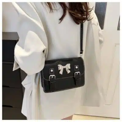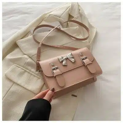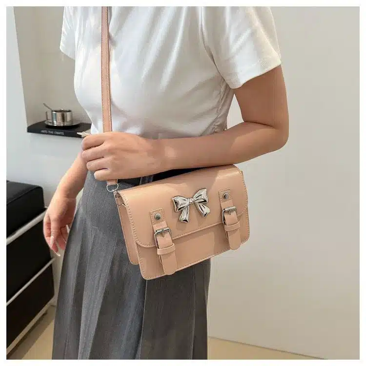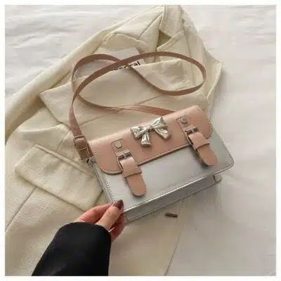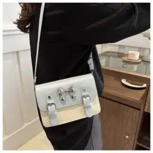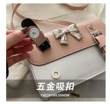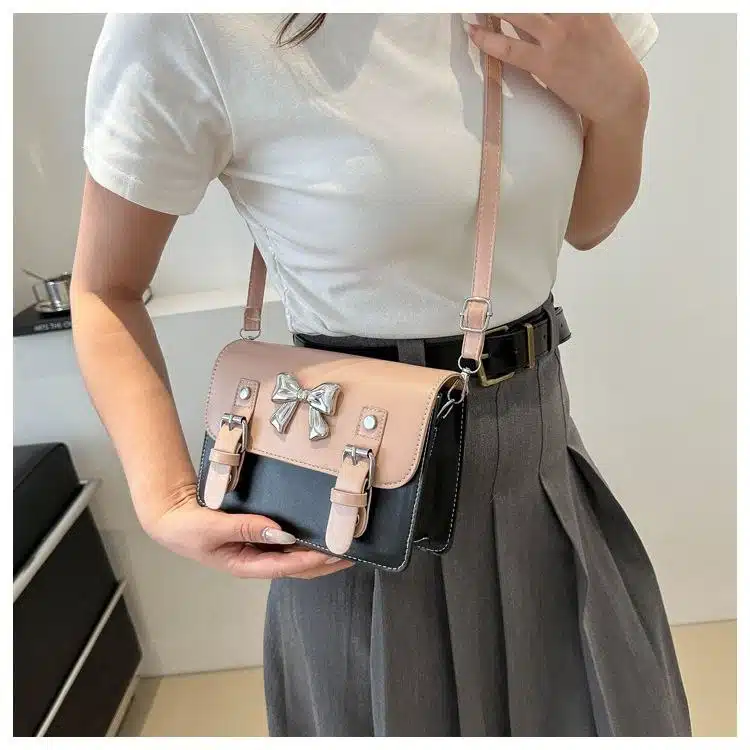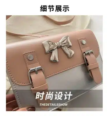 This charming satchel combines vintage-inspired aesthetics with modern playfulness. Featuring a distinctive metallic bow accent and classic buckle strap details, this structured flap bag is a perfect choice for adding a touch of personality to your daily look. Its compact size and versatile color combinations make it an ideal companion for both casual outings and stylish events.