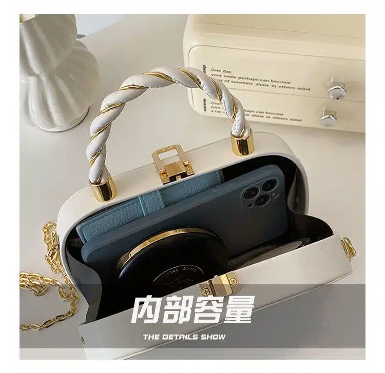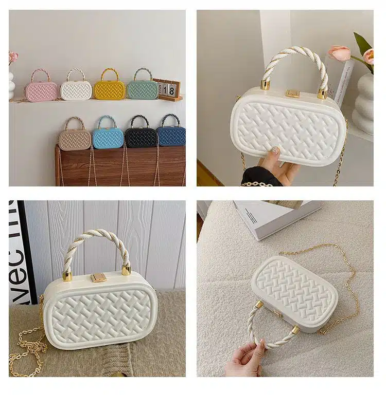Product Name: Woven Pattern Mini Box Bag with Twisted Handle